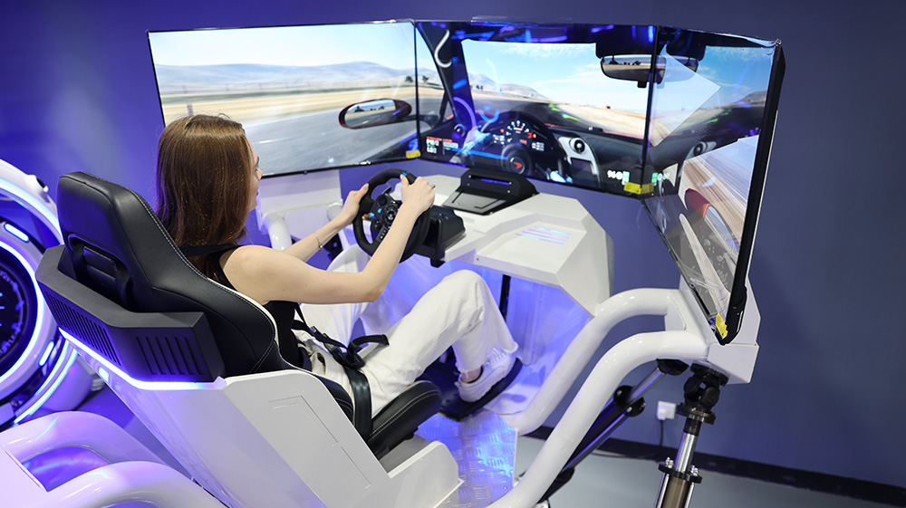 VR三屏無(wú)限駕駛是一款真實(shí)賽車體驗(yàn)的模擬平臺(tái),深度定制賽車外觀,細(xì)膩的六軸動(dòng)感仿真,給您前所未有的沉浸駕駛體驗(yàn)!